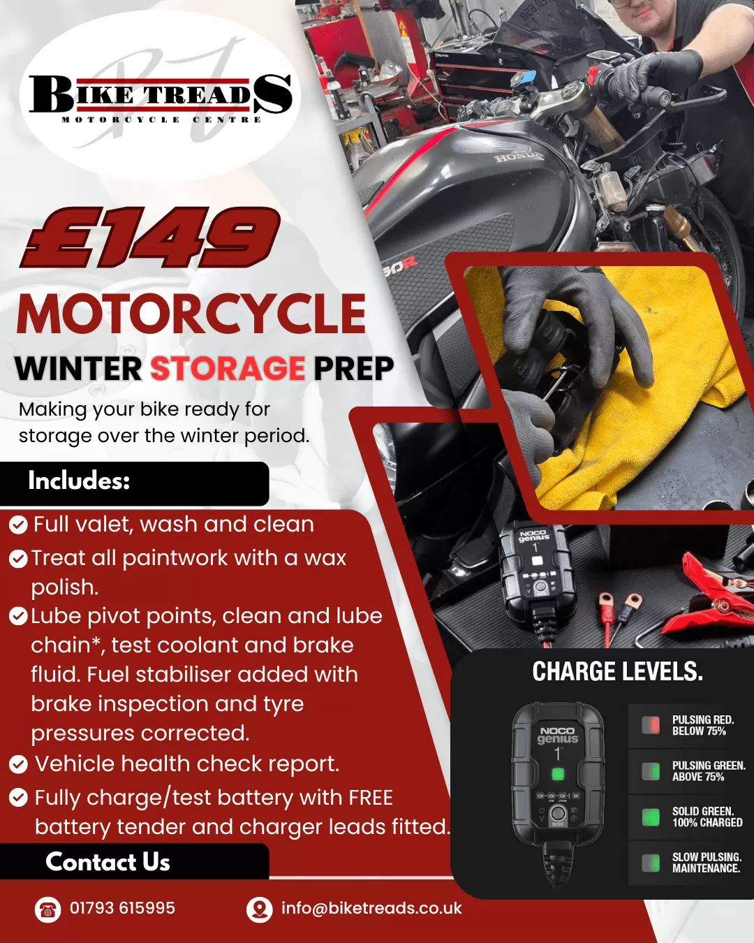 Situated in Swindon, just 5 minutes from the town centre, we're the South-West's leading motorcycle Tyre Centre - with a massive selection of new bikes, used bikes & a fantastic workshop to match.